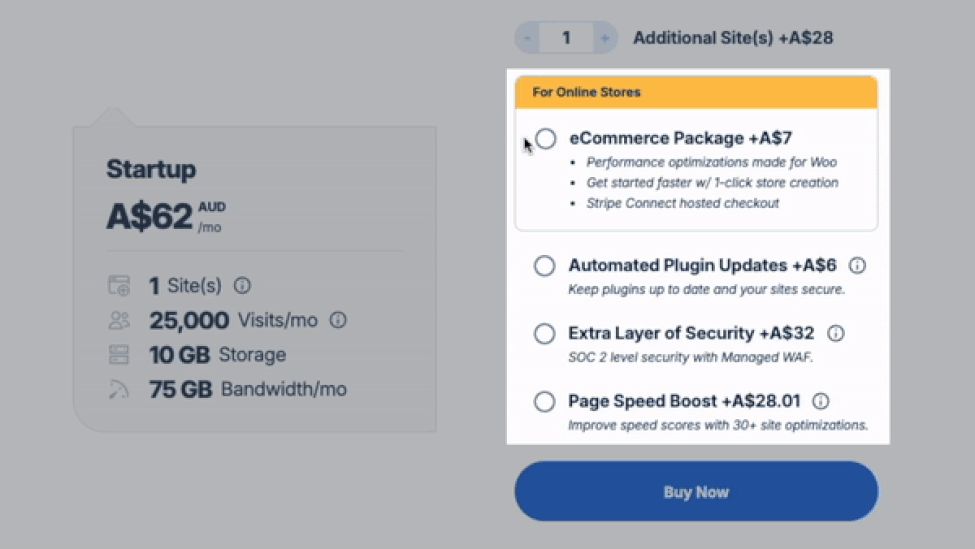 Pay attention to the 'eCommerce Package' and the 'Extra Layer of Security'. Together they look like they’ll cost 6 + 27 = $33, right?